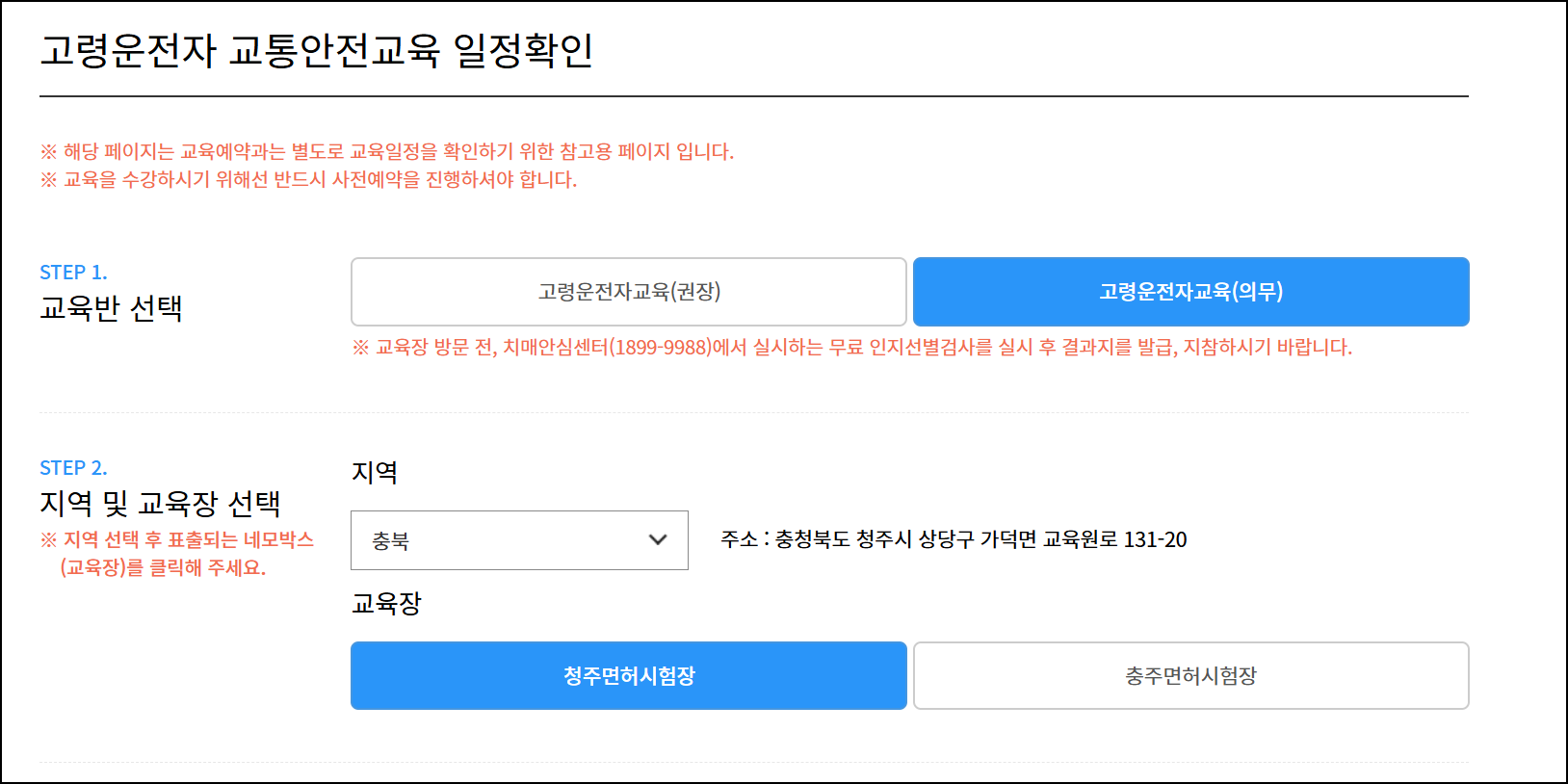 - STEP 3. 교육 장소(지역), 날짜, 시간 선택