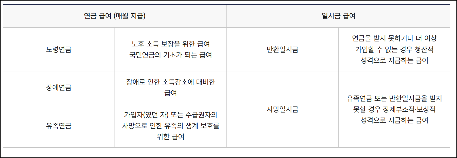 연금 수령 시작 60~65세 (출생연도별 상이)