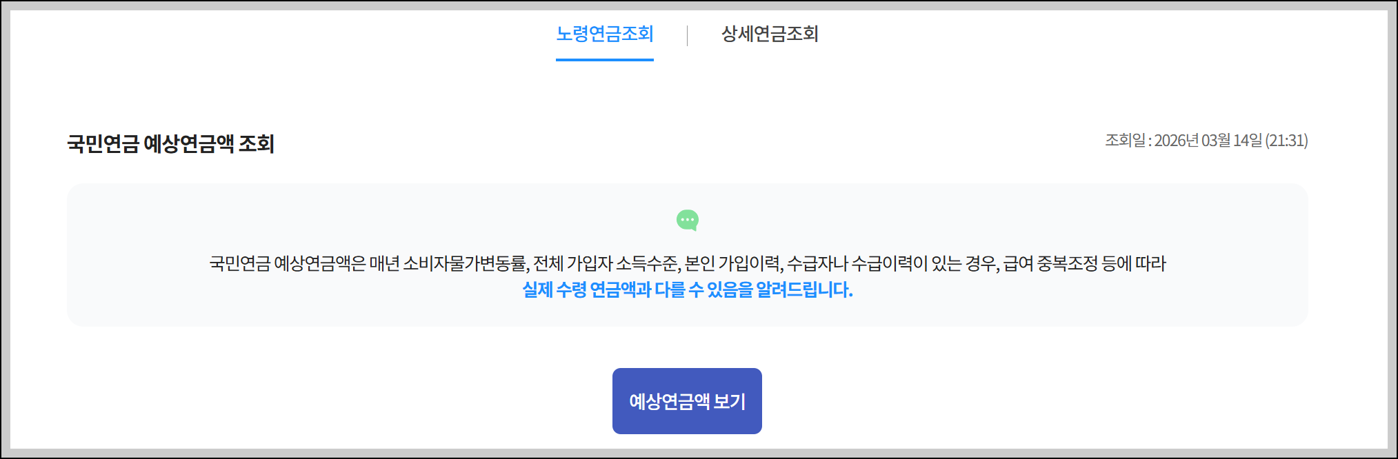 국민연금공단 홈페이지 또는 모바일 앱에서 예상연금액 조회 서비스를 통해 확인할 수 있습니다.