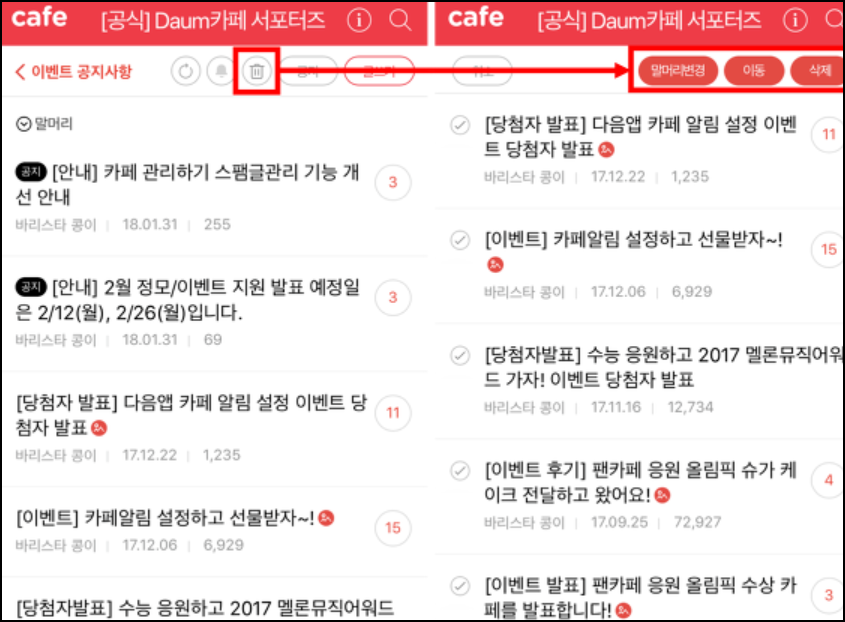 - 안드로이드: 구글 플레이스토어에서 '다음 카페' 검색 후 설치