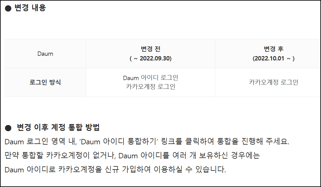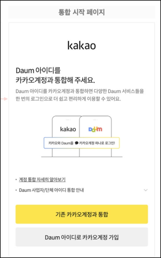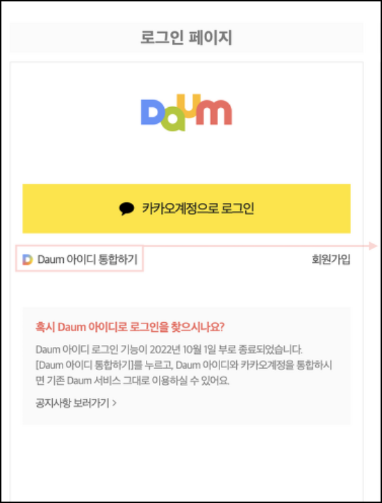 | Daum 아이디 입력 및 통합 | @daum.net 또는 @hanmail.net 형식 확인 |