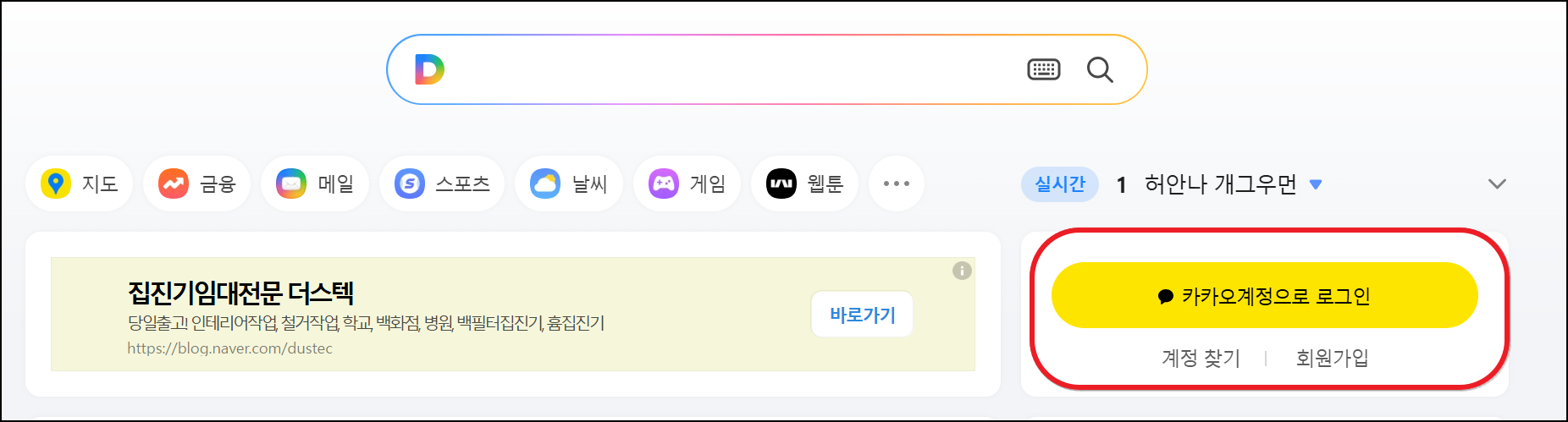 로그인 전 카카오 계정이 필수입니다. 미가입자는 accounts.kakao.com에서 이메일 또는 휴대폰 번호로 계정 생성 후, 기존 Daum 아이디를 통합하세요.