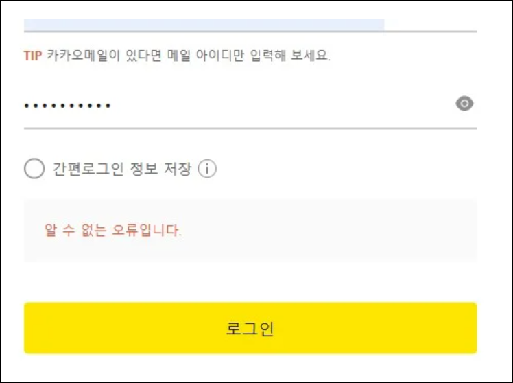 - 카카오 계정과 다음 계정이 통합되어 있어야 정상 로그인 가능