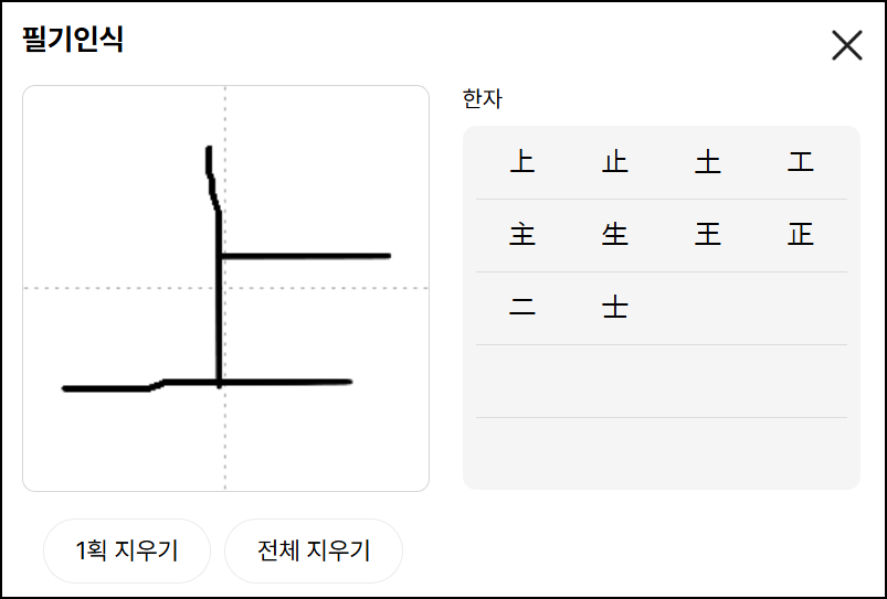 - 한 획씩 그릴 때마다 실시간으로 후보 한자 목록이 업데이트됩니다 - STEP 5 입력 창 아래쪽 또는 오른쪽에 비슷한 한자 후보 목록이 표시됩니다