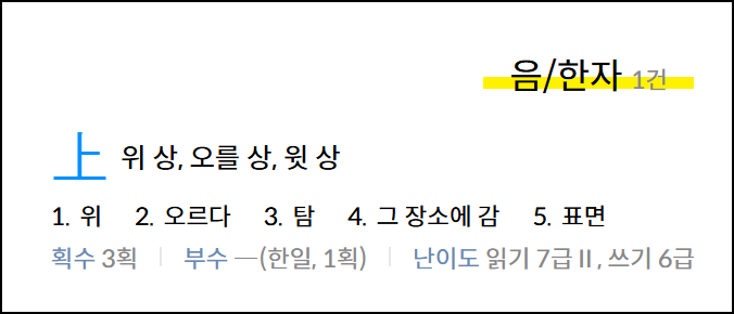 필기인식이나 요소검색으로 한자를 찾으면 아래 정보를 모두 확인할 수 있습니다.