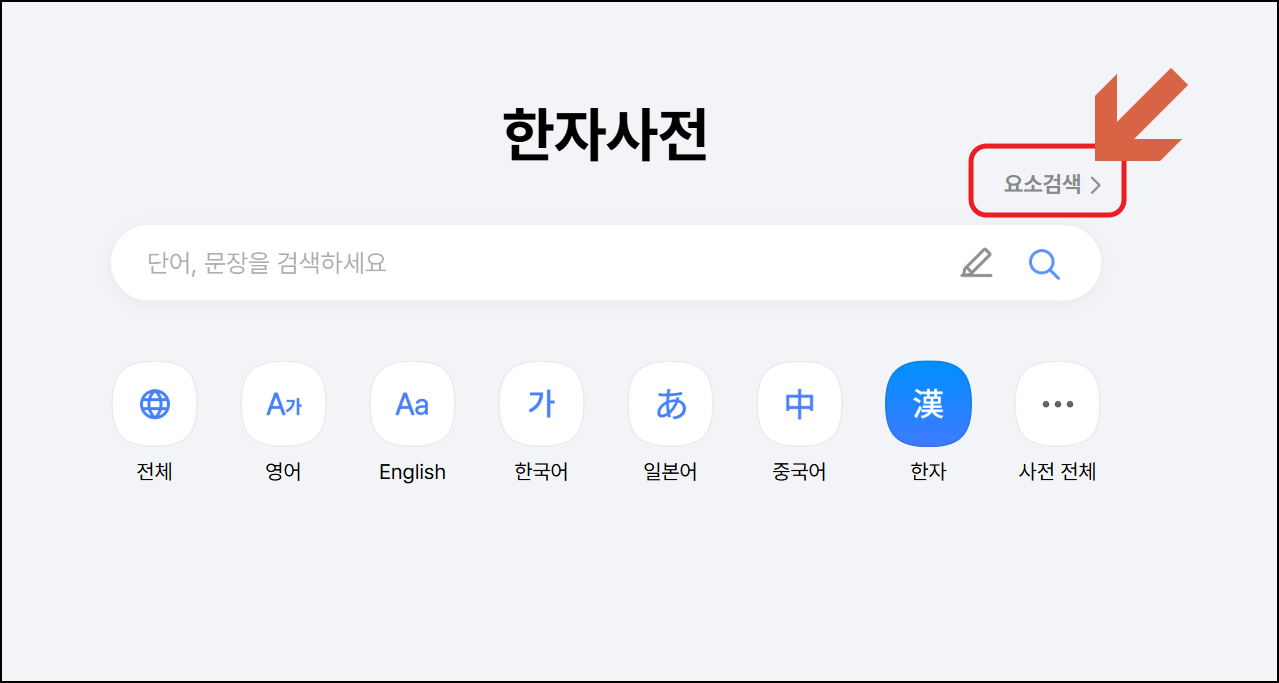 - STEP 1 다음 한자사전 접속 후 [요소검색] 탭 클릭