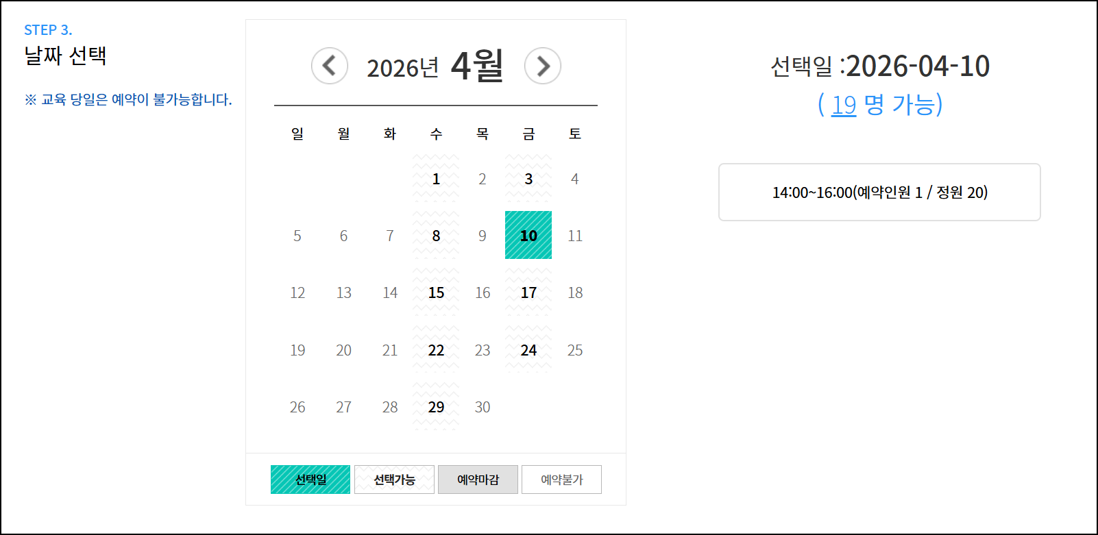 - STEP 3. 교육 장소(지역), 날짜, 시간 선택