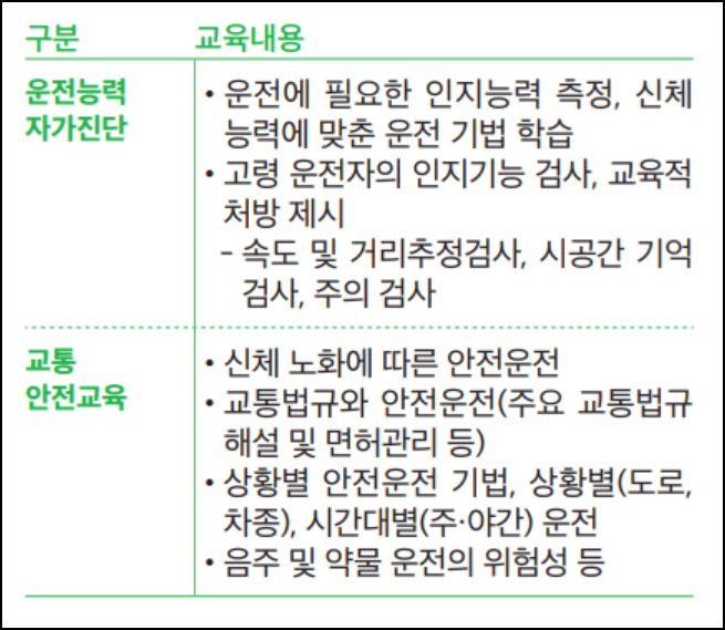 고령운전자 교육내용 및 시간
