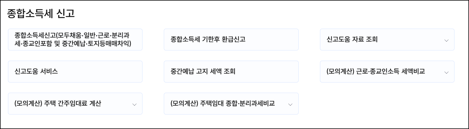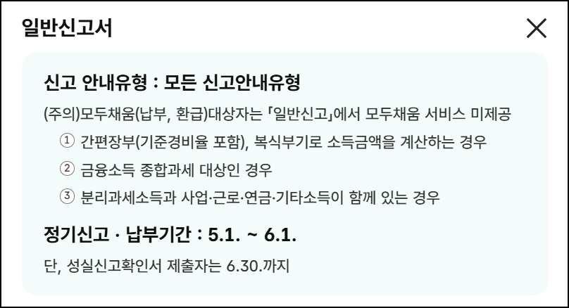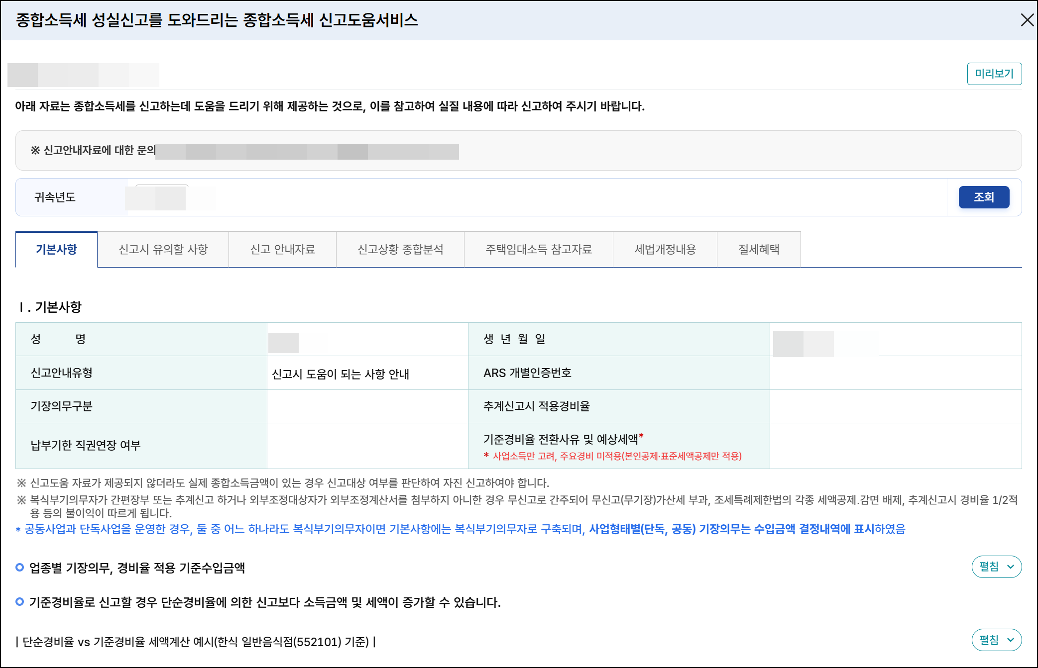 국세청이 납세자별로 맞춤 신고 안내 자료를 제공하는 서비스입니다. 내 소득 유형과 예상 세액까지 미리 파악할 수 있습니다.