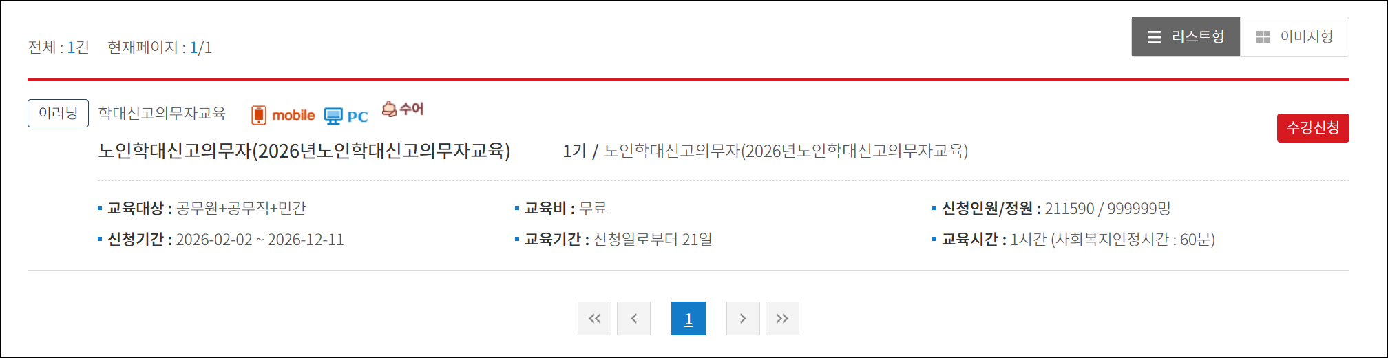 - 본인의 직무 또는 대상자에 맞는 교육 과정을 검색합니다.