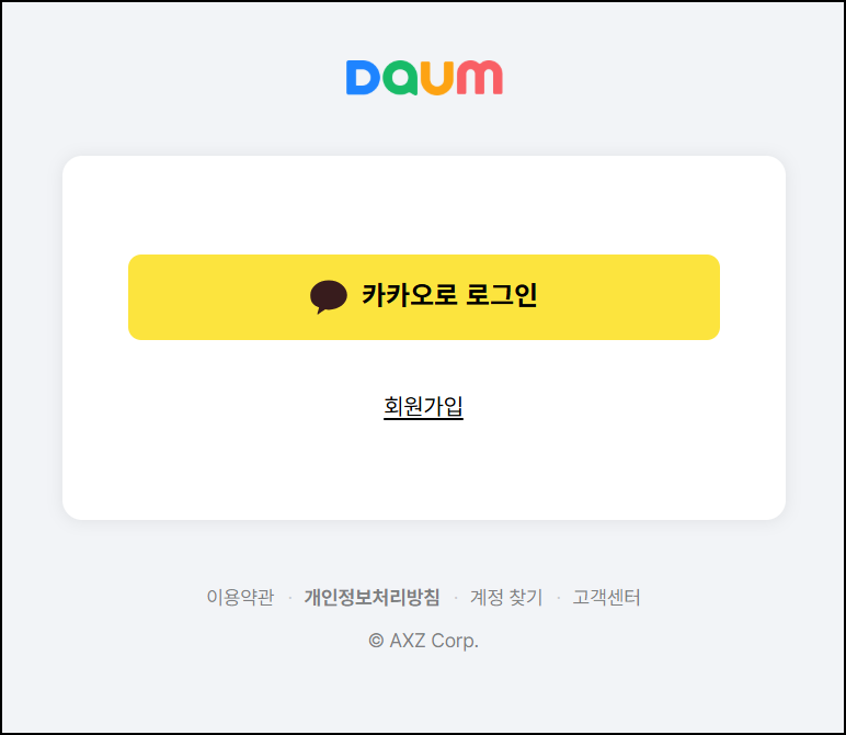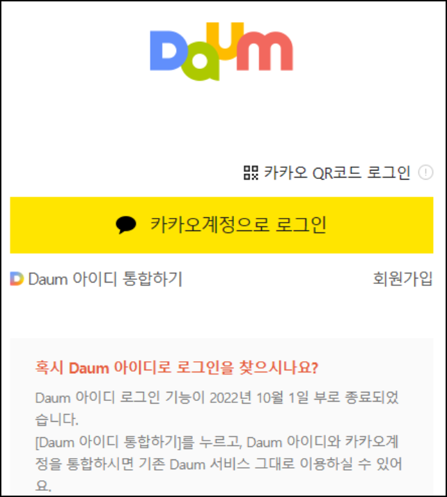 - 로그인 창에서 @hanmail.net 또는 @daum.net 선택